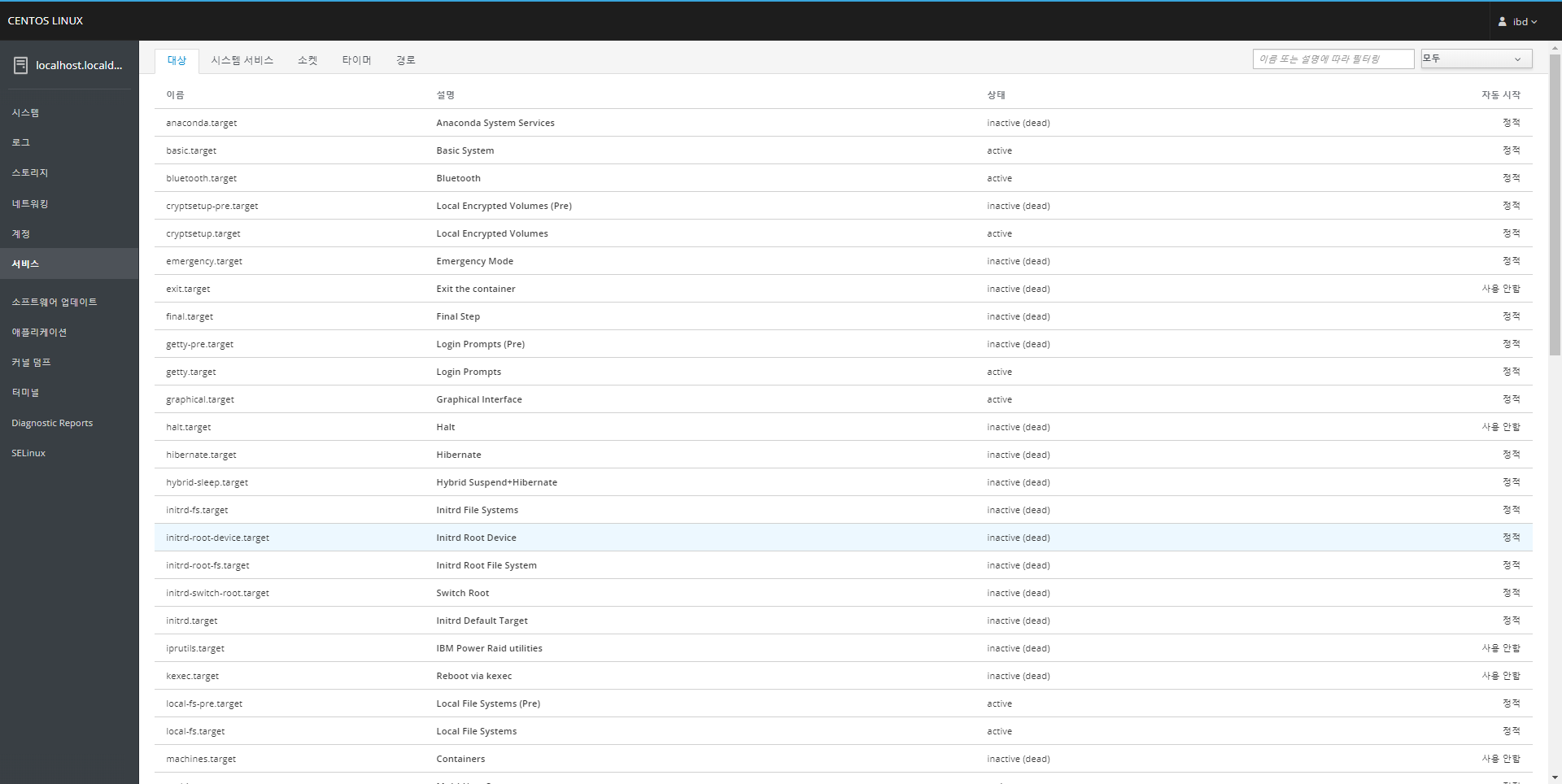 서비스 탭은 Systemctl 기능을 대신합니다. 여기서 서비스를 제어하려면 루트 계정이나 서버 관리자 계정이어야 합니다.