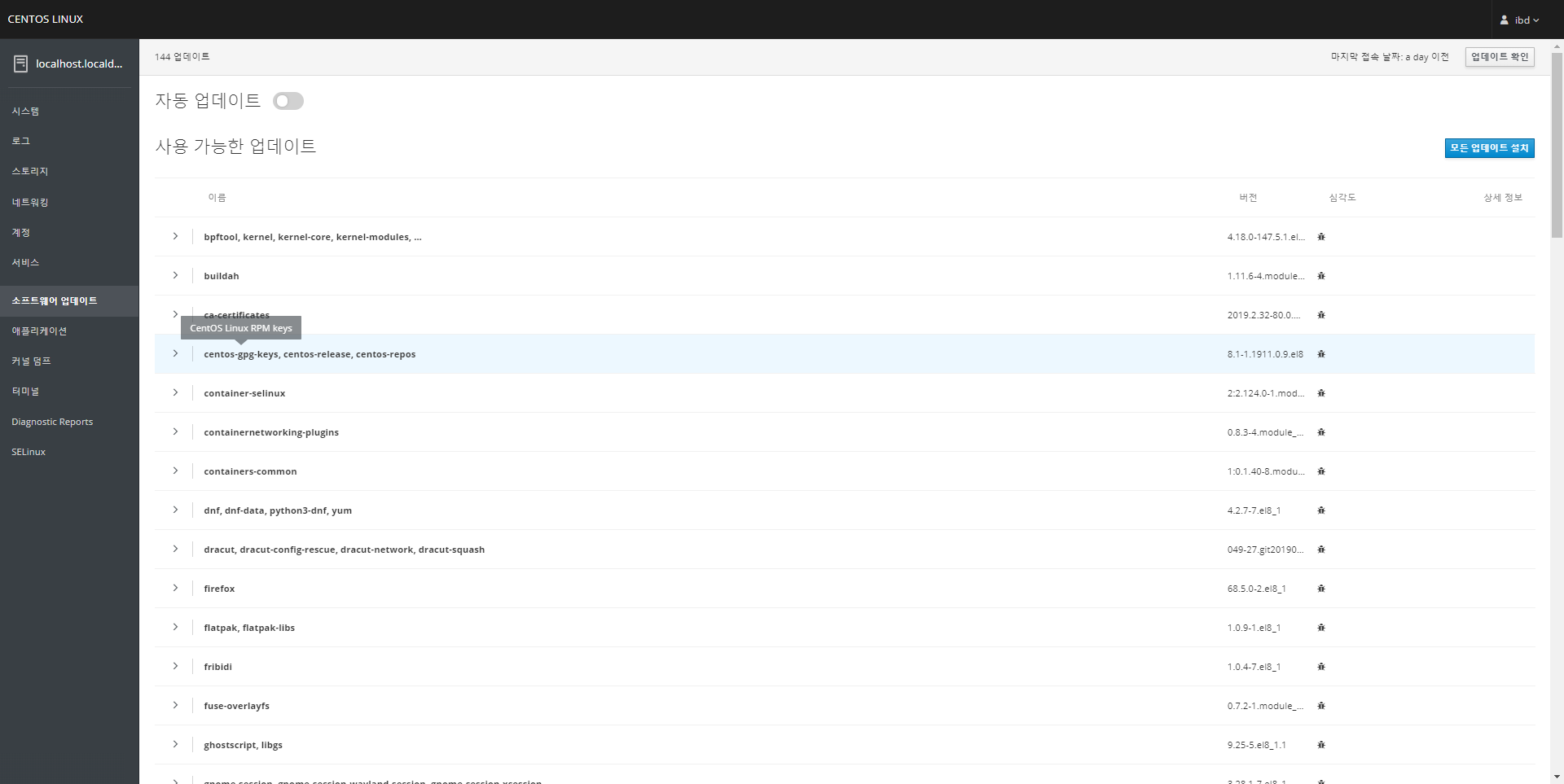소프트웨어 업데이트 창에서는 dnf의 업데이트 기능을 대신해 소프트웨어 업데이트를 관리할 수 있습니다.